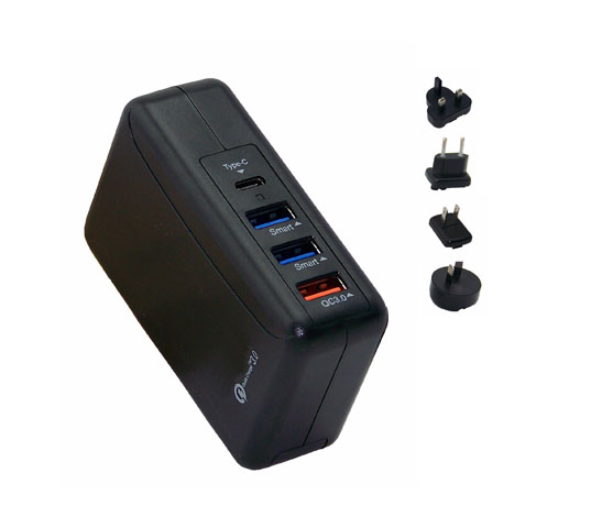 Advantage: 1. Each usb port output 2.4A(max) current. Type-C output 3A current. Built-in smart IC auotomatically identify charging devices and reach current as original charger.